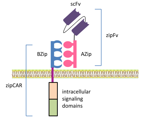 同样的道理,我们在不同的抗原识别受体以及T细胞上都加一对同源的leucine zipper模块,就能轻松获得一套针对多种靶标的T细胞。想打哪里打哪里!