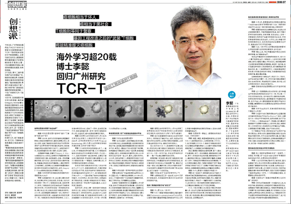 3个月后,第十二届中国生物产业大会登陆广州,杨宏钧应邀出席,在接受南都记者采访时就特别激动,“我对他很欣赏,希望今天能与他见个面”。他口中的“他”,就是该抗癌新药的研发者李懿,一个在广州研究TCR-T技术的专家。