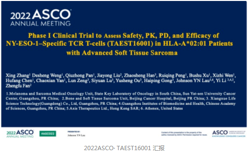 北京时间6月5日凌晨,TAEST16001作为中国第一个获得IND批件的TCR-T产品亮相ASCO的肉瘤专场,与国际知名药企GSK的同靶点研究同台报告,显示NY-ESO-1阳性的肿瘤抗原特异性TCR-T细胞治疗软组织肉瘤安全有效,引起业界高度关注!