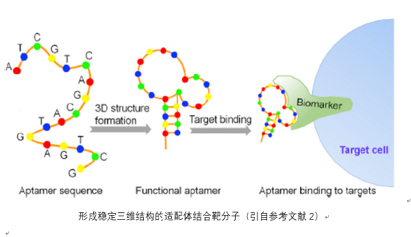 适配体与各种靶分子(小分子、蛋白质、细胞等)结合是基于单链核酸结构和空间构象的多样性,它可以通过链内某些互补碱基间的配对以及静电作用、氢键作用等自身发生适应性折叠,形成一些稳定的三维空间结构。