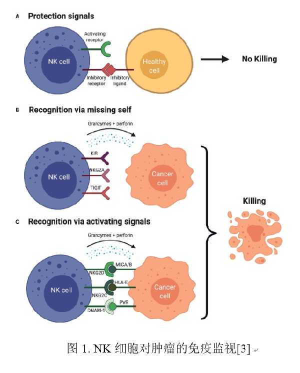 NK细胞,即自然杀伤细胞,来源于骨髓淋巴样干细胞,主要分布于骨髓、外周血、肝、脾、肺和淋巴结,在机体免疫监视和早期抗感染免疫过程中发挥重要作用[1]。与T细胞等其他免疫细胞不同,NK细胞具有重要的优势:它们无需抗原预先致敏,即可快速识别并消灭肿瘤细胞和感染病原体[2]。