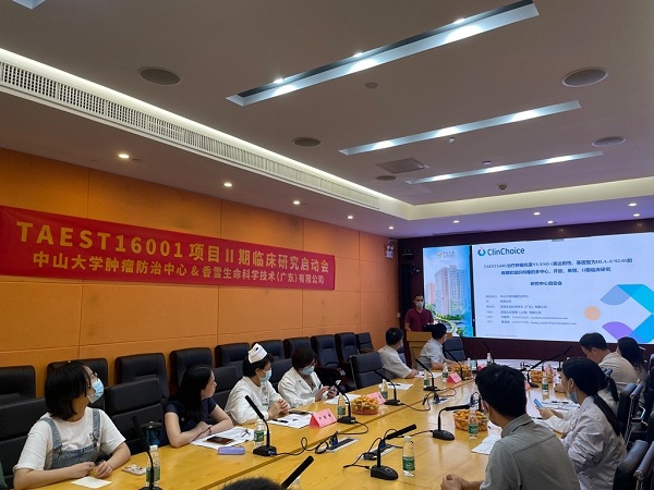 2022年7月8日,香雪生命科学技术(广东)有限公司与中山大学肿瘤防治中心召开了细胞治疗产品TAEST16001治疗肿瘤抗原NY-ESO-1表达阳性、基因型为HLA-A*02:01的晚期软组织肉瘤的多中心、开放、单臂、II期临床研究项目启动会,标志着中国首个TCR-T细胞治疗产品进入临床研究新的阶段。