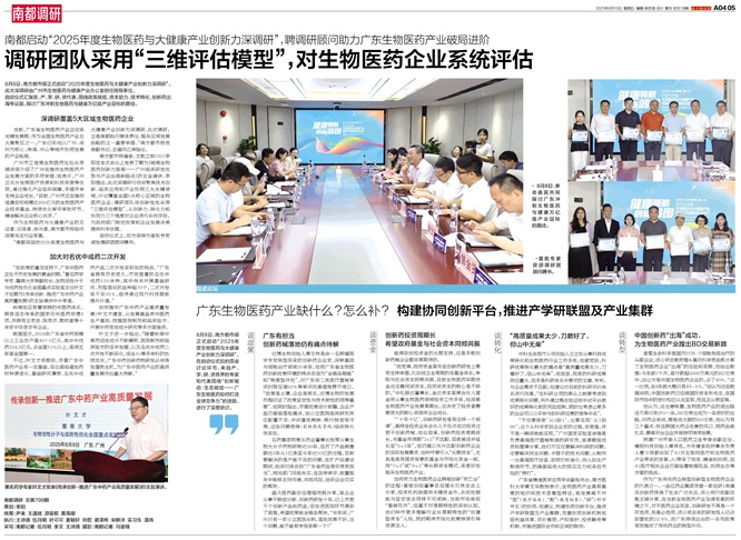 8月8日,南方都市报正式启动主题为“健康领航,创新宏图”的2025年度生物医药与大健康产业创新力深调研。此次深调研由广州市生物医药与健康产业办公室担任指导单位。本次启动仪式上,汇聚了政、产、学、研、资代表,围绕政策扶持、资本投入、成果转化、BD出海等话题,对广州作为粤港澳大湾区核心城市在生物医药领域如何发挥领航作用进行了深入探讨。