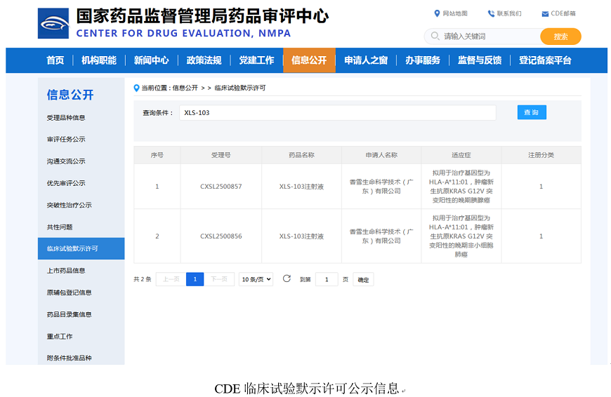 十年磨一剑,在生物医药的开发上体现的淋漓尽致。香雪生命科学牢记使命、不忘初心,终于在2025年12月22日,收到了国家药监局对不久前申报的针对KRAS G12V/HLA-A*1101的高亲和力TCR-T细胞治疗产品“XLS-103注射液”新药临床试验申请(IND)(受理编号为:CXSL2500856、CXSL2500857)的临床试验许可。更值得庆贺的是,该细胞治疗产品本次获批了两个适应症: