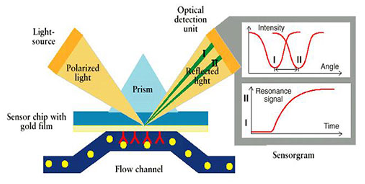 光学激发表面等离子体波主要采用两种方法:基于棱镜耦合器结构的衰减全反射法以及光栅衍射法。1960年代末1970年代初,Kretschmann、Raether和Otto通过衰减全反射方法演示了表面等离子体的光学激发,为SPR传感器结构奠定了基础。到了1980年,SPR及其相关利用倏逝波的技术被应用于薄膜表征以及生物和化学相互作用研究。这些技术使研究者能够实时、无需标记地研究溶液中固定化受体与目标分析物之间的相互作用。1980年,Pharmacia公司对SPR技术产生兴趣并开始研究该技术的潜力。1984年,Pharmacia公司成立了子公司Pharmacia Biosensor AB,致力于开发、生产和销售实用的SPR仪器。1990年,Pharmacia Biosensor AB开发出首台商业化SPR仪器BIAcore。1996年,Biacore从原Pharmacia公司剥离出来独立运营,于2006年被GE收购,成为GE医疗生命科学大家庭中的一员。2019年,Danaher(丹纳赫)公司收购GE医疗生命科学事业部,Biacore成为旗下新品牌Cytiva(思拓凡)的一部分。自1990年至今,Biacore推陈出新先后推出了一系列SPR分子互作仪:Biacore 1000、Biacore 2000、Biacore X、Biacore 3000、Biacore Q、Biacore J、Biacore A100、Biacore T100、Biacore T200、Biacore 4000、Biacore X100、Biacore S200、Biacore 8K系列和Biacore 1系列等。经过35年的发展,Biacore已成为无标记分子互作检测技术的金标准。