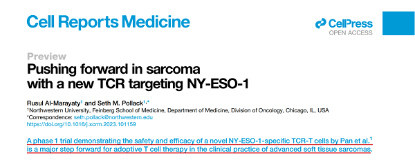 Recently, the internationally renowned journal Cell Reports Medicine (IF=16.988) published the Phase I clinical research results of China's first TCR-T cell immunotherapy product, TAEST16001. The journal invited a professor from Northwestern University in the United States to provide a special commentary on the article, giving high praise and noting that the Phase I clinical research of TAEST16001 marks a critical step forward in the clinical translation of adoptive T-cell immunotherapy for advanced soft tissue sarcoma.