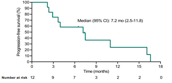 • The median PFS was 7.2 months [95% CI, 2.5-11.8].